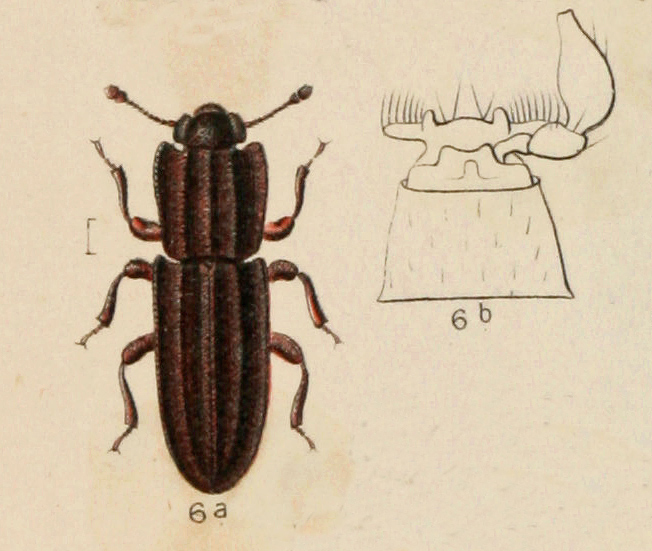 Per restare in tema di antiche raffigurazioni, questo è invece il disegno a colori di Langelandia anophthalma presente in: "The Coleoptera of the British islands" di W.W. Flower, 1889: