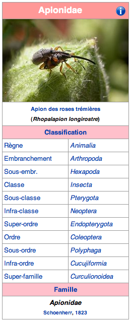 Ho cercato quindi "apionidae" non ho trovato pagine in ita.