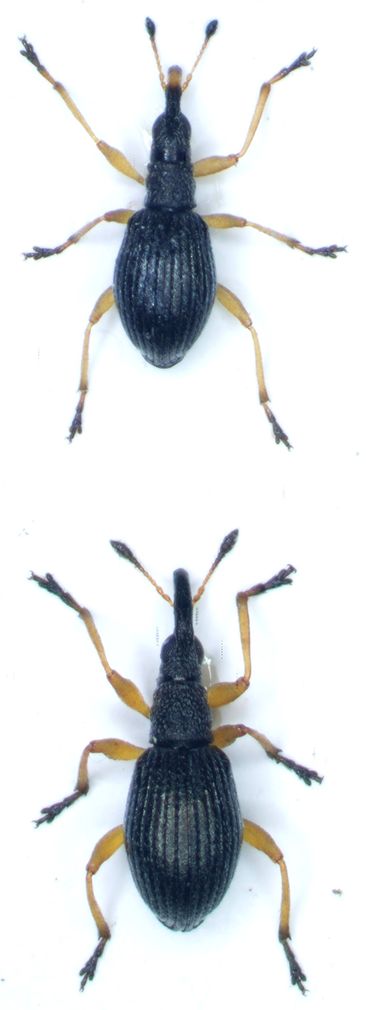 krep ha scritto: Antennal club clearly demarcated from funiculus. Funiculus testaceous, distal one or two articlesoften partially darker but not broader than preceding articles. Male with yellow prorostrum. Smallest species of the genus ... P. nigritarse
