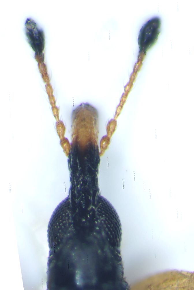Antennal club clearly demarcated from funiculus. Funiculus testaceous, distal one or two articlesoften partially darker but not broader than preceding articles. Male with yellow prorostrum. Smallest species of the genus ... P. nigritarse