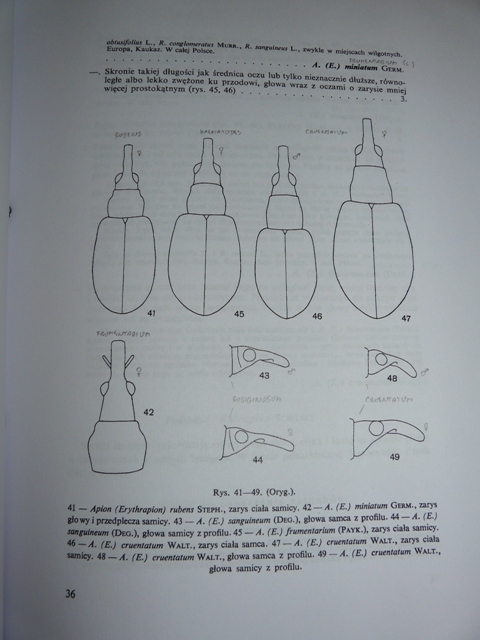 Apion frumentarium (Linnaeus), je na obr.. 42 (syn. Apion miniatum Germar)
