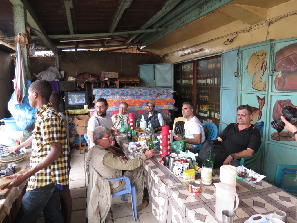 Urge una considerazione sulla fragilità degli impegni che prendiamo (anche con noi stessi). La spedizione c'è stata (il mese scorso), io ne facevo parte ma le cose sono andate diversamente. All'andata ci siamo fermati proprio lì. Hanno spostato il "ristorante", che non è più in mezzo alla polvere della pista ma in una specie di cortile interno. Ero stanco e c'era poco tempo. Ho mangiato pollo e banane e scattato qualche foto.