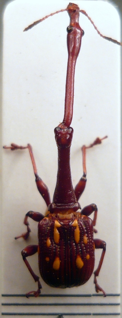 Il Trachelophorus giraffa, che è uno dei più noti insetti del Madagascar, si trova solo lì o anche altrove? Ho una coppia che sembra appartenere a questa specie proveniente dall'Indonesia (se necessario, posso mandare le foto) che ho ricevuto di recente assieme a dei Buprestidi.