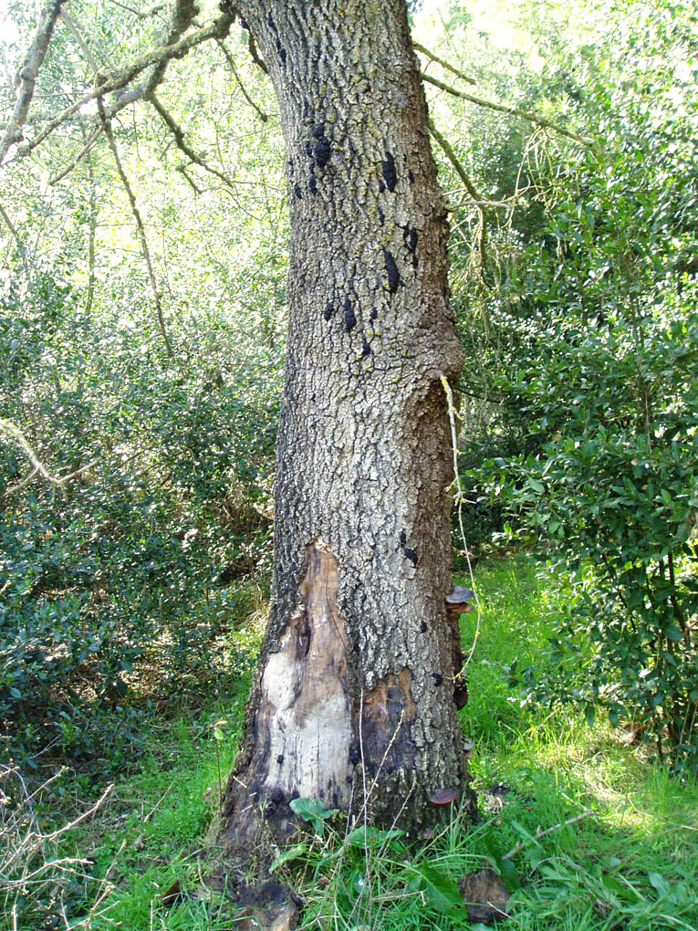 ti racconto la mia esperienza sperando che ti sia di aiuto nella ricerca.Devi trovare piante morte attaccate da funghi come quelli nelle foto successive.I Platyrhinus resinosus erano decisamente abbondanti(su tutta la pianta ce ne erano almeno una quindicina e quella non era l'unica pianta