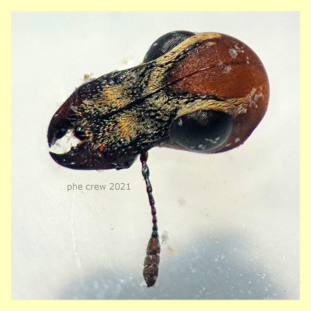 ...mentre stavo togliendo il ciuffo di un Ananas provenienza Costa Rica tra le foglie scorsi qualcosa...e quasi non ci credevo quando mi si presenta una testa secca di Anthribidae !!! :shock: :roll: :shock: :roll: . La sua misura è di 2,5 mm. Ho cercato anche il corpo ma non l'ho trovato...forse non l'ho visto o mi si è sgretolato. Si riesce ad andare oltre solo da queste foto ?