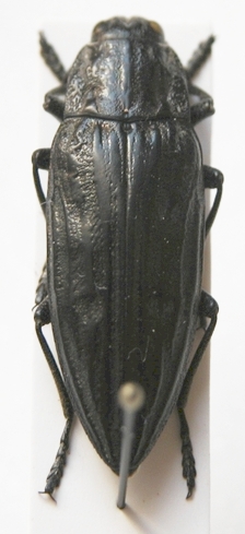 Purtroppo nella foto di questo esemplare l'apice elitrale è nascosto dallo spillo, quindi non si riesce a capire come sia fatto! Servirebbe un'altra foto in cui si vedesse l'apice, oppure Entomarci potrebbe controllare direttamente l'esemplare e dirci come è.