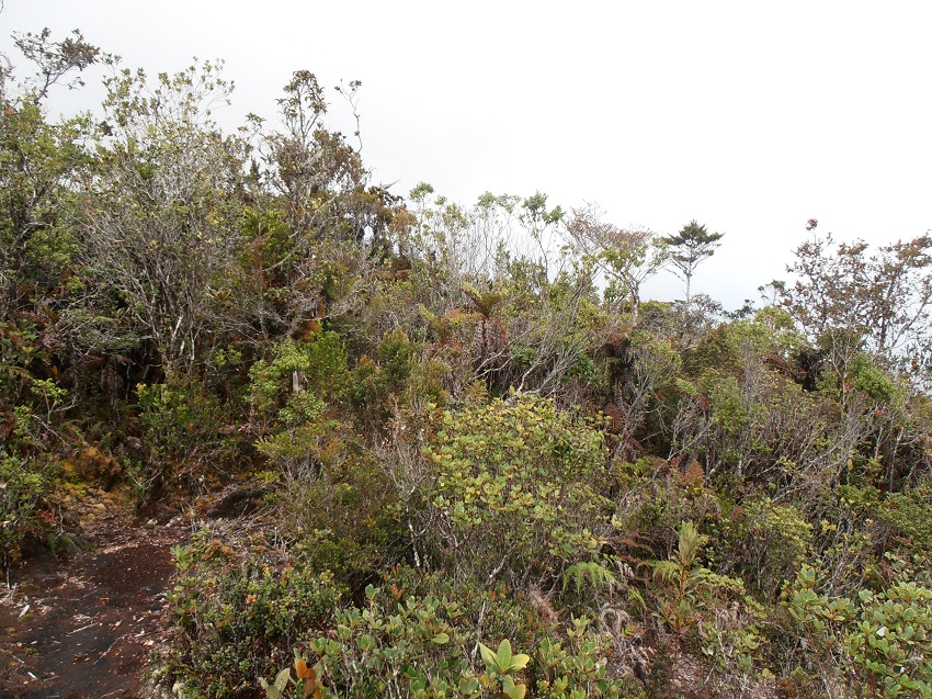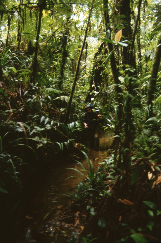 Bisognerebbe capire come gli insetti percepiscono queste differenze di colori perché nel fitto della vegetazione sono veramente pochi i colori che risaltano. Noi siamo abituati ad ambienti con minore variabilità cromatica (a livello di vegetazione), nelle foreste tropicali che ho visitato il discorso è diverso; in molte piante le nuove foglie sono gialle o rosse, a volte talmente scure da sembrare nere e nel fitto della foresta i giochi di ombre confondono tutto. In pratica se un insetto non si muove è molto difficile vederlo, qualunque sia il suo colore. Questa è la foresta lungo un corso d'acqua a nord di Manokwari, qui siamo a livello del mare questa è la foresta sui monti Arfak, circa 2000 m e questa la vegetazione sulla cima del monte Arfak, 2950 m Questa invece è la foresta di Makira, Isole Salomone, il giorno in cui ci siamo persi, esattamente 21 anni fa...
