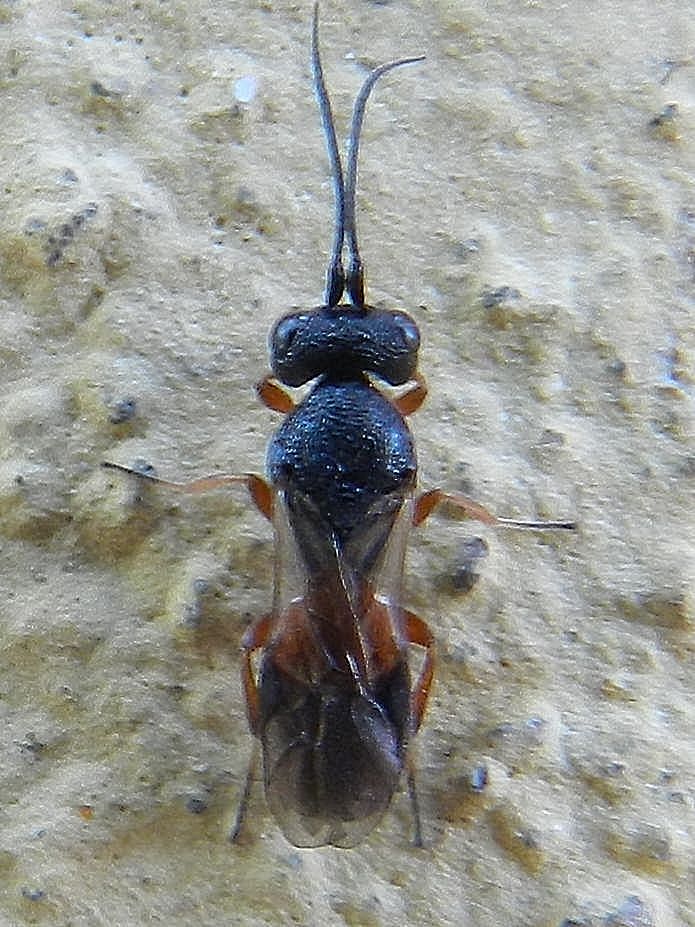 A occhio, se non ricordo male, questo grazioso imenottero misurava circa 5 mm. e stava arrampicato su muro di edificio.