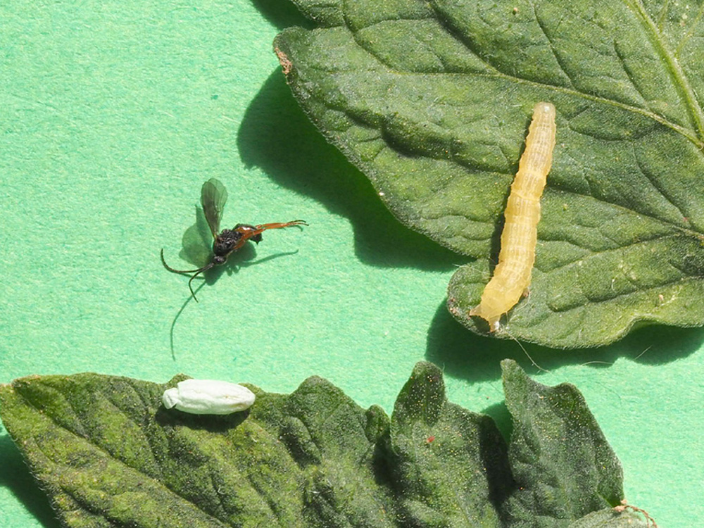 Ho voluto cimentarmi nella determinazione del parassitoide che ho rilevato su Noctuidae subfamily Plusiinae, (presumo Chrysodeixis chalcites), che a casa mia parassita soprattutto Solanum lycopersicum. Considerando il numero di segmenti relativi all’antenna (molto numerosi) e alle nervature dell’ala posteriore sono giunta alla conclusione che potrebbe trattarsi di un Microgastrinae. In base alle nervature dell’ala anteriore forse al genere Microgaster Latreille, 1804. Mi accontento di sapere se sono arrivata a conclusioni corrette.
