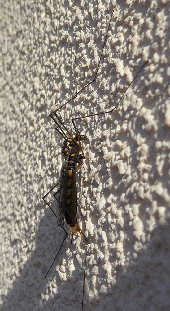 Femmina di Nephrotoma sp., Tipulidae. Le foto non sono molto nitide, ma la colorazione generale e quanto si vede delle fasce colorate dell'addome mi farebbero pensare a Nephrotoma crocata (Linnaeus, 1758).