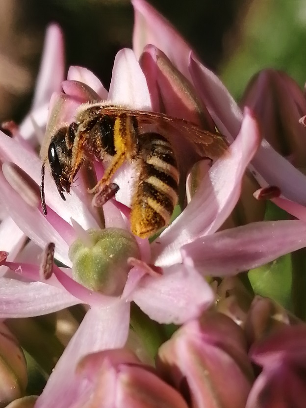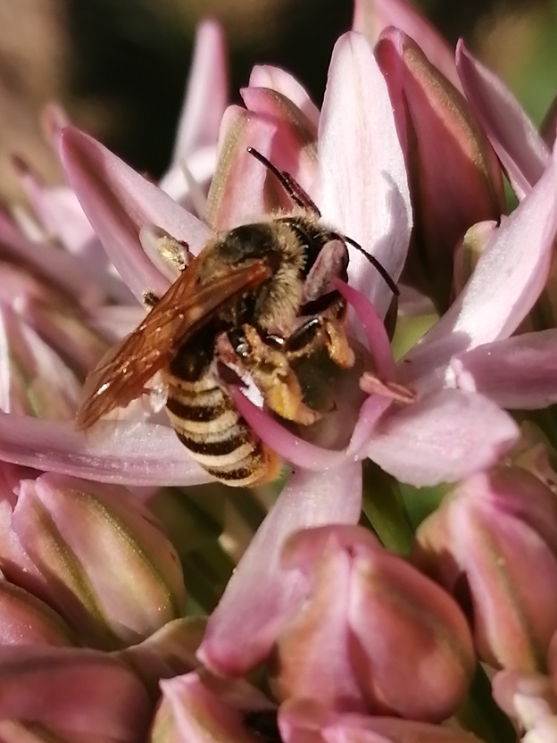 Dovrebbe essere Halictus scabiosae, ma chi mi sa dire se maschio o femmina e come si riconoscono?