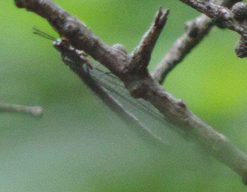 Fotografato lungo la strada sterrata per la frazione Desertes di Cesana (TO) a circa 1300 metri di quota, il 6 luglio. Mi ha stupito l’ambiente del ritrovamento, perché se è vero che la zona è estremamente secca e xerotermica, con pendii rocciosi assolati, l’esemplare l’ho trovato in una delle poche zone boscose (soprattutto conifere, ma con parecchio sottobosco), chiuse, ombrose e umide. Anche se so che è impossibile avere una identificazione certa, è probabile che si tratti di Myrmeleon formicarius? Le ali erano effettivamente ialine, e si intravedono le basi dei femori aranciati…