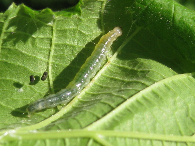 Coinvolta una foglia di Corylus sp. da questa larva: è un Tortricidae e se sì quale?