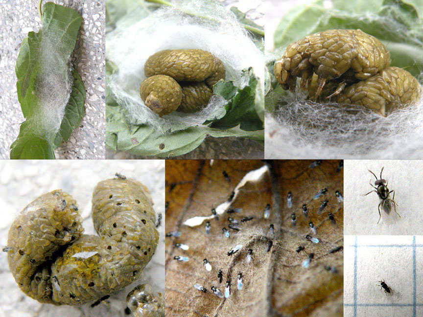 Mi rendo conto che l’immagine dell’insetto non possa condurre né al genere né alla specie, pertanto mi accontenterei di sapere se la famiglia è quella da me ipotizzata. Si tratta con tutta evidenza di un insetto parassitoide. In questo caso ha parassitato la larve di un Lepidottero, di cui ha assunto la forma. La pianta ospite è l’Acalifa (Acalypha virginica L.), ma non credo che sia la sola.
