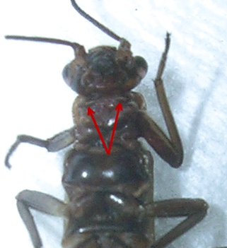 Il genere Amphinemura si dovrebbe distinguere per la presenza di due ciuffi di tracheobranchie sul prosterno... siccome non sono sicura di aver capito, vi chiedo se è quello indicato dalle frecce che si intende :roll: