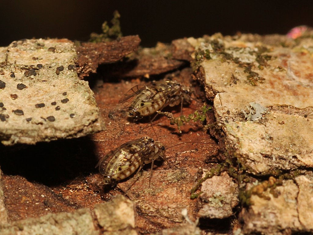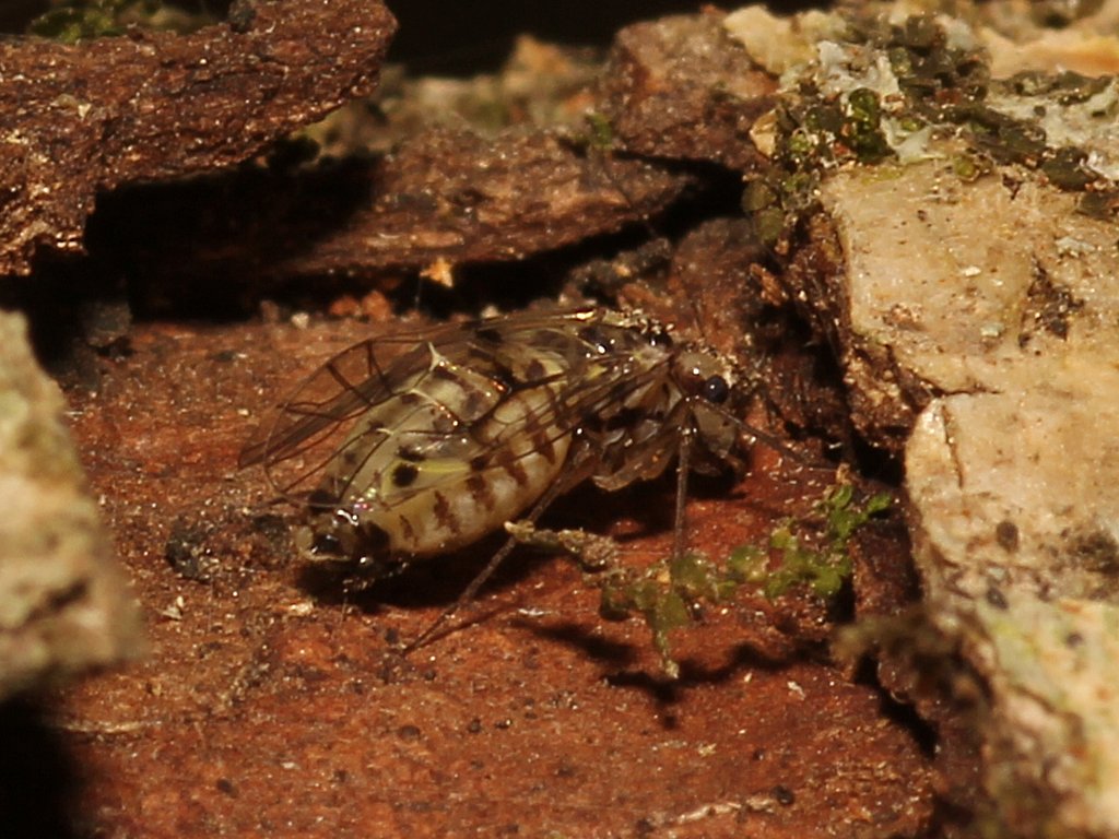 In una cassetta con rami di quercia e di Crataegus raccolti in un boschetto vicino Campagnano il 19.II.2012, si sono moltiplicati questi grossi Psocotteri, ed ora è pieno di questi adulti alati, lunghi sui 5 mm e forse più, che gironzolano sul lato inferiore di ogni pezzo di legno.