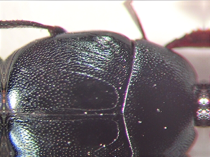 Un minuscolo rilievo rotondeggiante è presente al centro del primo tergite scoperto presso l’estremità posteriore-distale delle elitre.