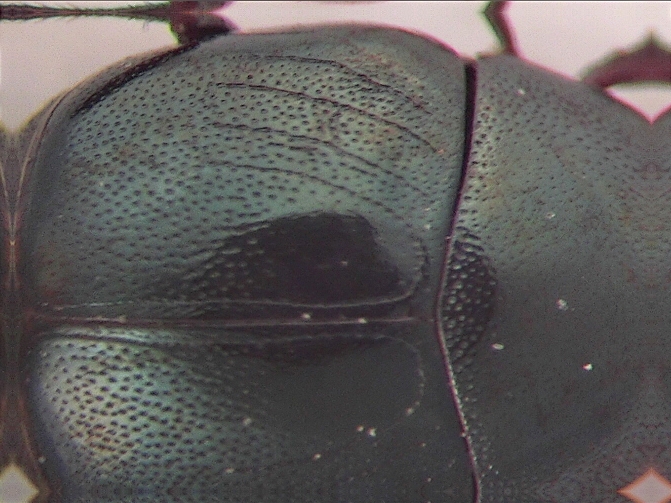 Tra la stria esterna e il margine dell’elitra sono appena visibili una coppia di minuscole rugosità o solchi convergenti appena accennati. .