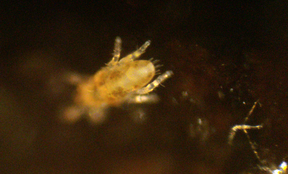 Tra le foglie al suolo raccolte nel bosco di Pianzo (comune di Casina, Reggio Emilia), 478 m slm. 09-04-16. Lunghezza sul mezzo millimetro. Osservato al microscopio ottico al minimo ingrandimento.