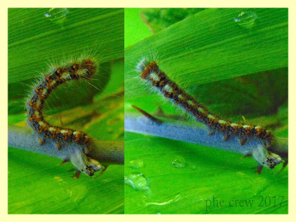 ...fotografata su Rubus la lunghezza è di circa 20 mm. Dalla forma sembrerebbe una larva di Lasiocampidae e dalla texture forse un giovane di Lasiocampa sp.