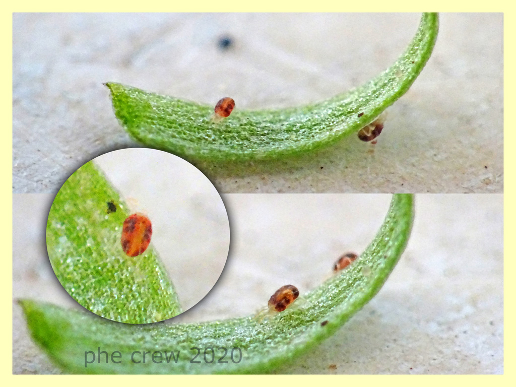 ...dopo aver provato varie volte (circa 3) a portare a maturazione dei germogli di Poppy Victoria Cross ma senza successo....ho sgamato finalmente il colpevole della loro essiccazione... cioè dei microscopici Tetranychidae che se li ciucciavano avidamente. Mi sono accorto di loro solo vedendo le macchie bianche dei danni dei loro morsi (in foto). Il colpevole dovrebbe essere Tetranychus urticae la sua misura è tra i 0,3/0,5 mm. Gironzolando un po' sul web ho notato che esiste anche l' Eotetranychus althaeae che sembrerebbe legato alla pianta Althea sp....dato che ne ho una praticamente attaccata al vaso dei Poppy, mi chiedevo come fosse fatto....qualcuno lo conosce ?