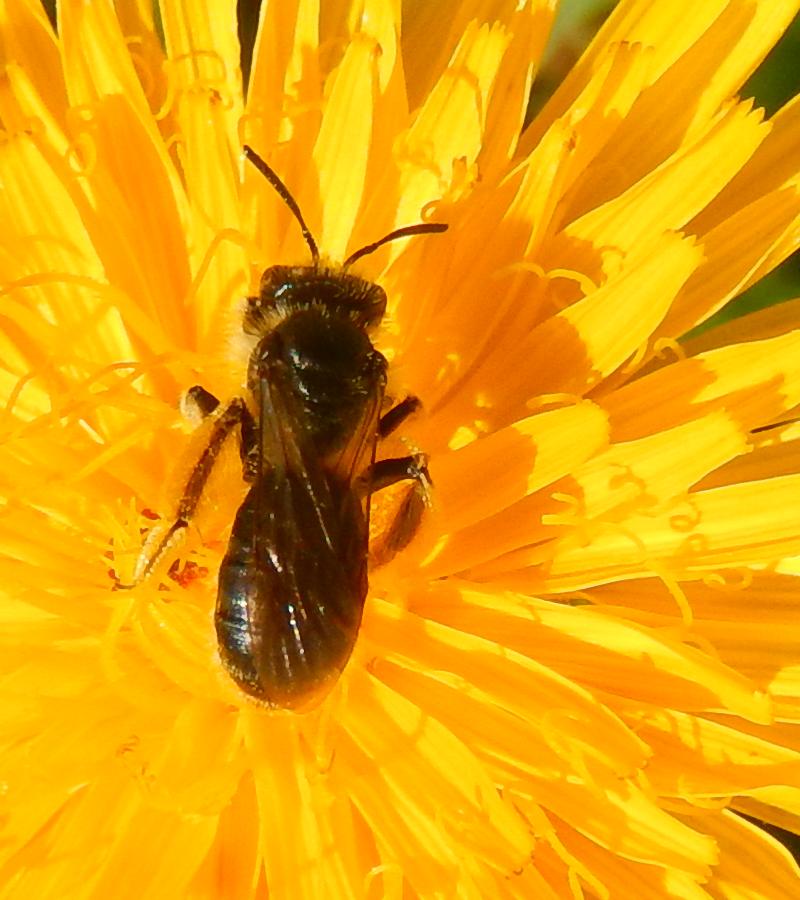 lunghezza e aspetto generale simili ad un'ape comune, ma l'addome è tutto scuro. Grazie a chi ha il tempo di darmi una determinazione!