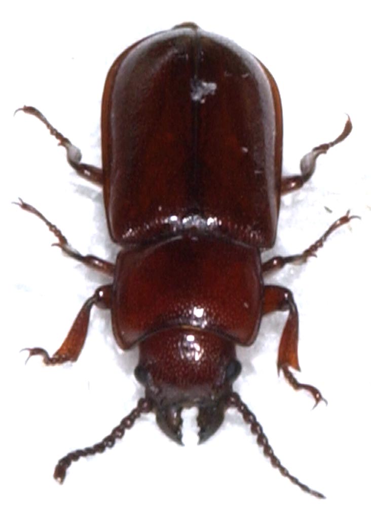 Questo mi ha sorpreso: inizialmente (e molto ingenuamente) ho pensato fosse un lucanide. Non essendo riuscito a trovarlo fro loro, ho virato sui cerambicidi (!?), e ora penso sia una Parandra brunnea, ma desidero conferma. Lunghezza circa 14 mm
