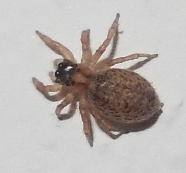 Salve, ancora un minuscolo ragnetto cacciatore in casa. Certi dettagli (testa nera, palpi bianchi) mi hanno fatto pensare a specie già note, ma per altri aspetti è diverso. Corpo lungo al massimo 3 mm! Se qualcuno ha tempo di dargli un'occhiata, gliene sarò grato... |