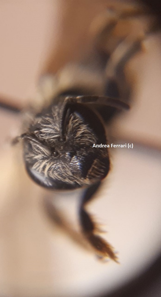 Ciao Mi scuso anticipatamente per la qualità delle foto, ma purtroppo non dispongo di un microscopio, quindi vi riporto delle foto fatte con la lente di ingrandimento. Non sono riuscito ad identificare questa specie, che sono abbastanza sicuro appartenere al genere Halictus. Ha la cuticola nera, non sono evidenti le bande di peli sull'addome, si intravedono solo se si guarda attentamene. La cuticola sulle zampe è nera e tarsi più sul marroncino/arancio. Vi ringrazio dell'aiuto, se potrebbero servire altre foto provvederò |