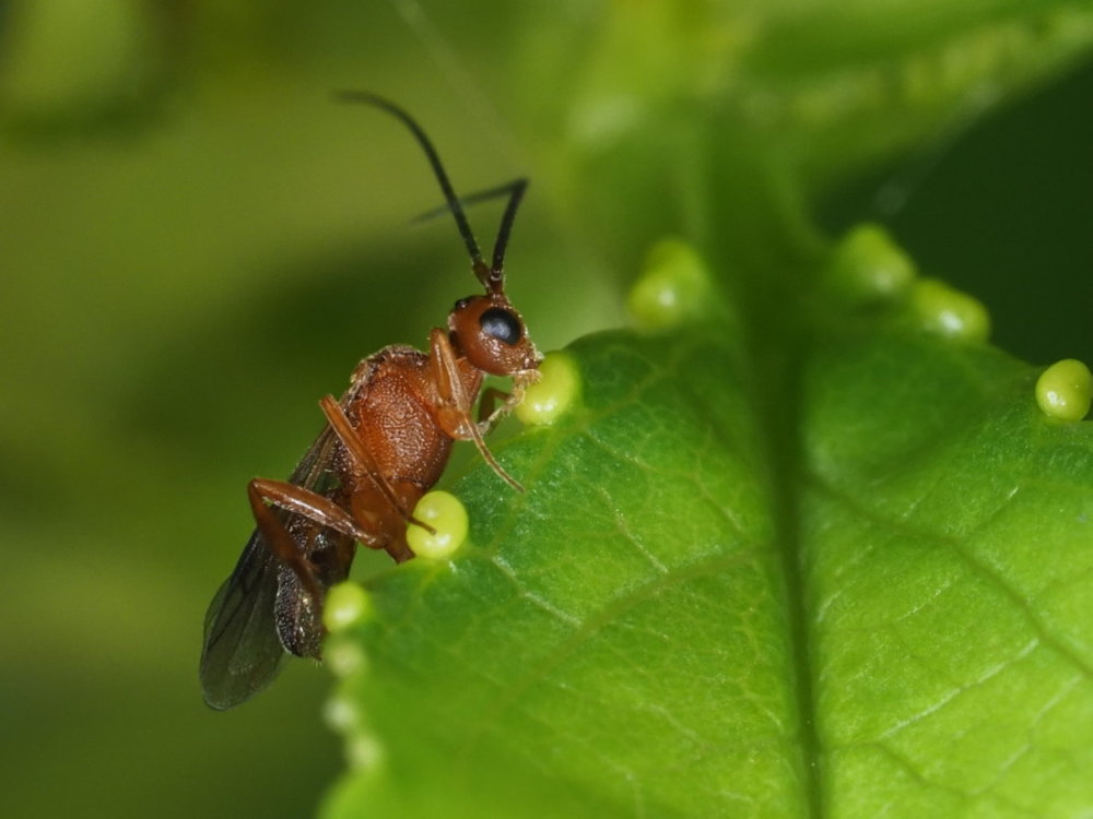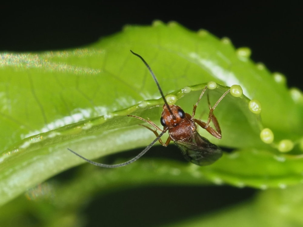 Credo che la famiglia sia quella dei Braconidae... Le sue dimensioni sono piccole, meno di 5 millimetri.