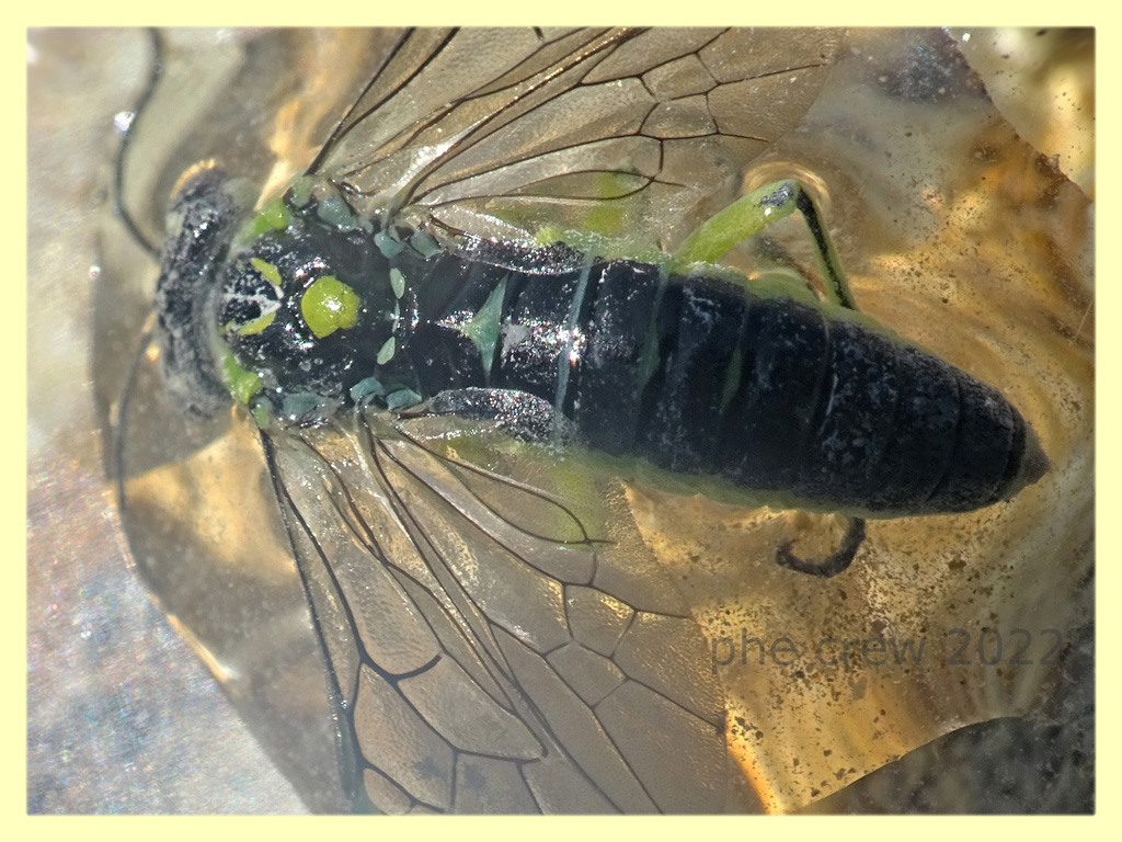 ….salvata da una pozzanghera di zolfo….purtroppo non la potevo muovere troppo...si poteva spappolare, queste sono le uniche foto che ho. Girando nel web ho visto che e' presente al centro Italia e Sicilia….e dato che il posto era pieno di Ginestra in fiore...mi butterei su Rhogogaster genistae :D :D :ses