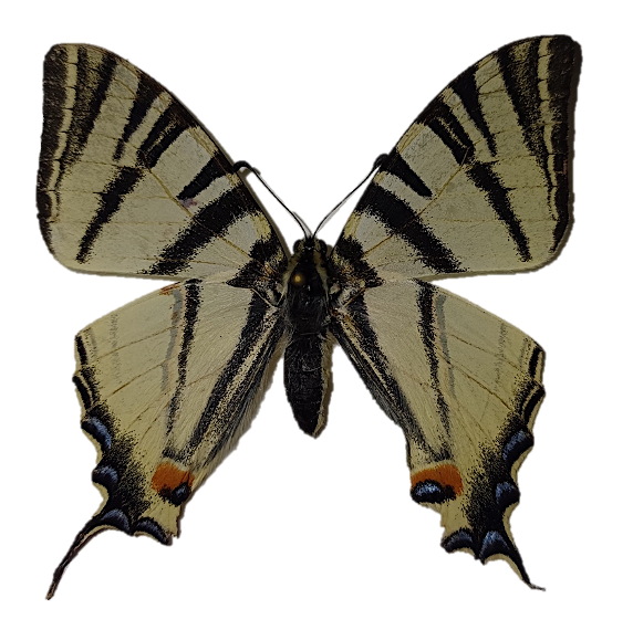 L’Iphiclides podalirius (Linnaeus, 1758) è un lepidottero diurno appartenente alla famiglia dei Papilionidi: famiglia di farfalle grandi e multicolori, che comprende circa 600 specie. Sebbene la maggior parte vivano alle latitudini tropicali e temperate, altre sono presenti in tutti i continenti, ad eccezione dell'Antartide. Questo lepidottero, comunemente chiamato podalirio, ho come sfondo una livrea giallo pallida, quasi trasparente, presenta inoltre fasce trasversali bruno-nerastre a forma di V verso l’angolo dell’ala anteriore. Nelle ali posteriori troviamo sfumature a mezzaluna blu o celesti, con la presenza più o meno marcato di due ocelli, contornati da scaglie arancioni. Nell’area distale dell’ala posteriore vi troviamo due lunghe code (questa morfologia dell’ala viene chiamata: ala caudata di notevole lunghezza). Il podalirio o “coda di rondine” è molto diffusa in tutta la penisola italiana, comprese le isole. Presenta un’apertura alare di circa 8 centimetri. Frequenta aree coltivate ed incolte, da prati fioriti a giardini urbani, dalla pianura alla montagna fino ai 1800 metri di altitudine. Vola da marzo settembre in una o due generazioni annue; la larva si nutre di foglie di prugnolo (Prunus spinosa), di melo selvatico, ciliegio e molti altri alberi da frutto. Spesso viene confusa con il macaone (Papilio Machaon) che ha una livrea e una colorazione molto simile al podalirio. La femmina spesso depone le uova su piante di Prunus e sia le uova, sia le larve, sono di colore verde in modo da mimetizzarsi completamente con l’ambiente che le circonda, questa forma di mimetismo viene chiamato criptismo, ovvero l’insetto si mimetizza per forma, colore, dimensione e caratteristiche morfologiche all’ambiente che le circonda. Questa specie, insieme al macaone, è una delle più vistose è più bella in Italia. Ha un volo molto elegante e leggiadro.