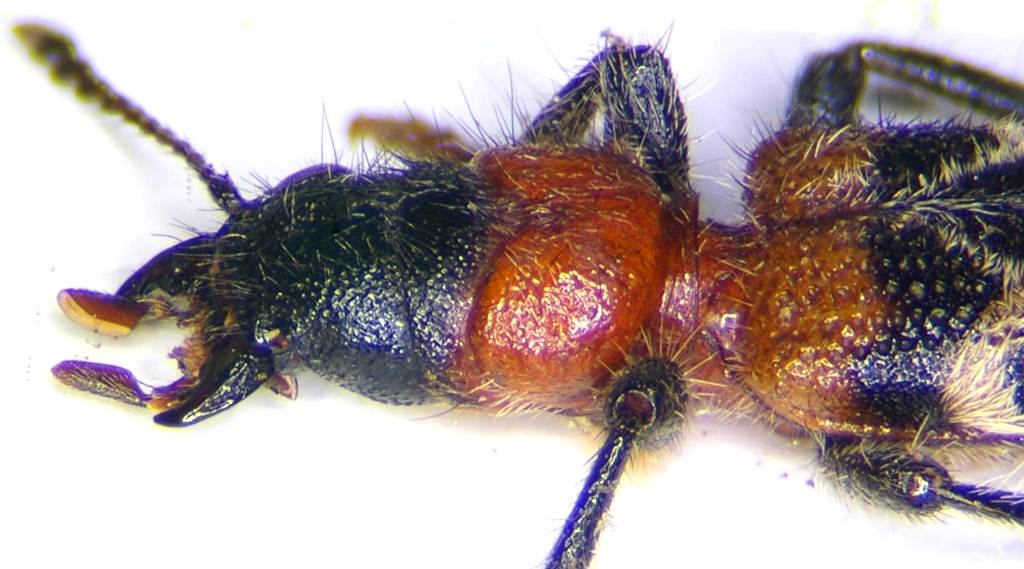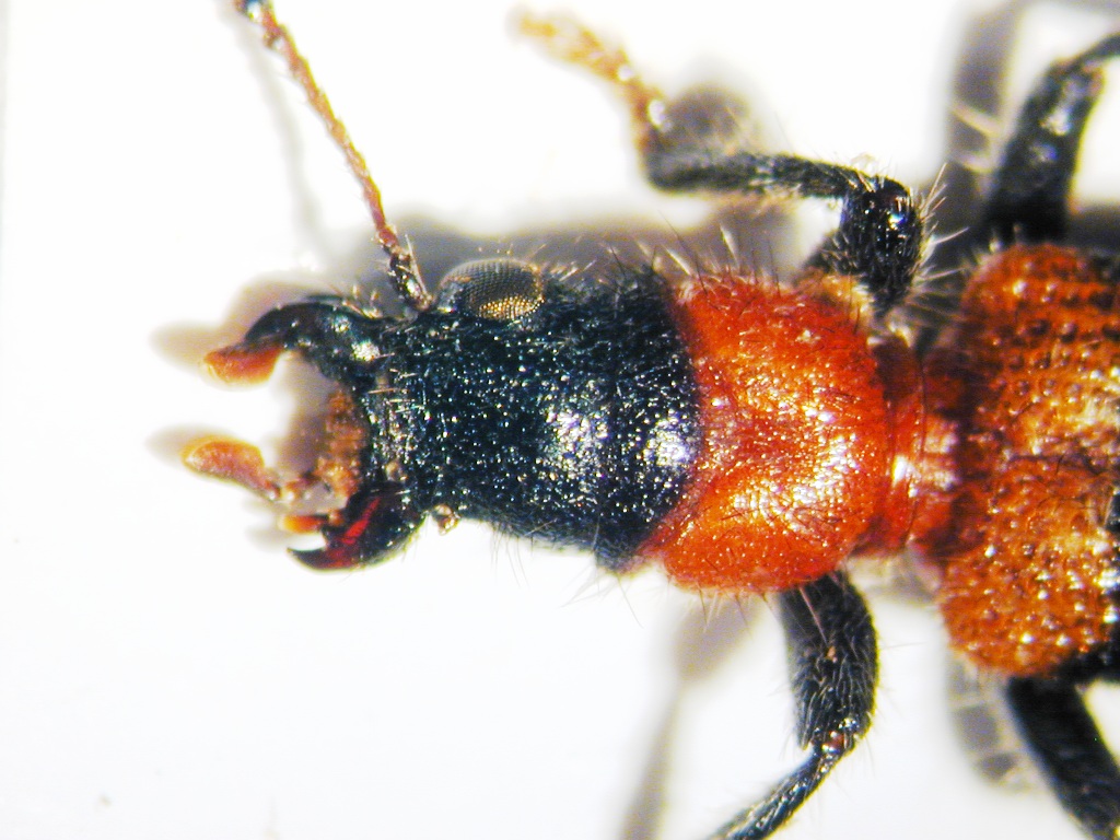 Grazie alla disponibilità dell'amico ing. Battaini di Castiglione O. che ha realizzato le immagini voglio mostrare una curiosa teratologia che ho riscontrato su un Thanasimus formicarius raccolto in Trentino.
