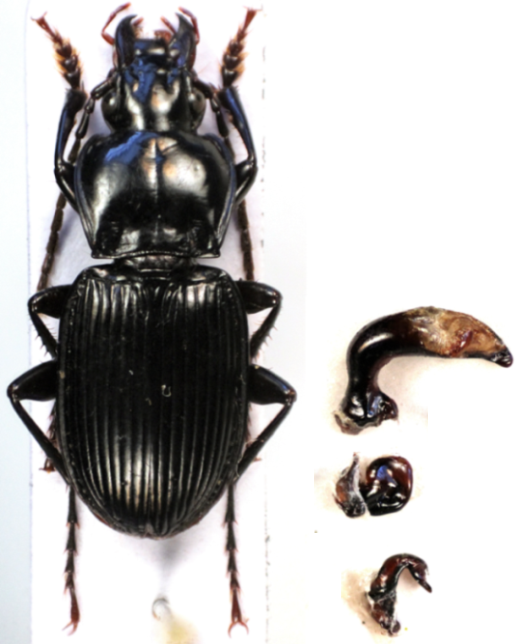 Da notare lo stranissimo edeago (anche se un po' tutte le specie di Trechus del gruppo strigipennis hanno forme strane).