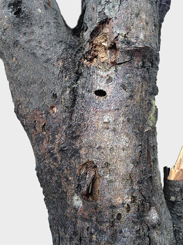 Saperda populnea per intenderci) L'ingrossamento, se presente, è graduale e costante non più lungo di 8-10 cm, e lo spessore maggiore raggiunge all'centro ca 1/3 - 1/2 in più del spessore del ramo sano. Tuttavia non è sempre cosi.