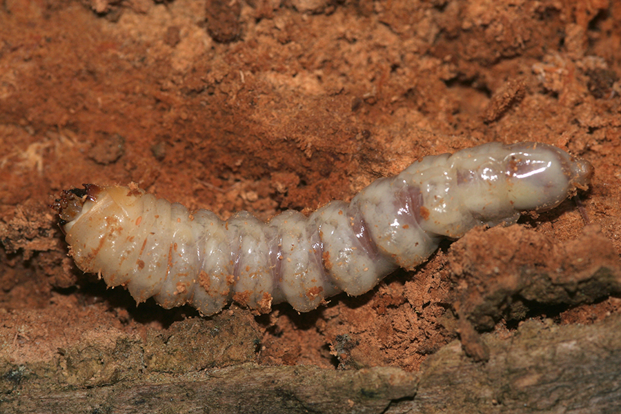 Larve di cerambicidi (davvero molto comuni, bastava spaccaro uno dei numerosi ceppi di pino marcescenti per trovarne a decine, molti credo siano di Ergates faber. Ne ho raccolte un buon numero, spero di riuscire ad allevarle senza troppe perdite) Questa è una delle tante.