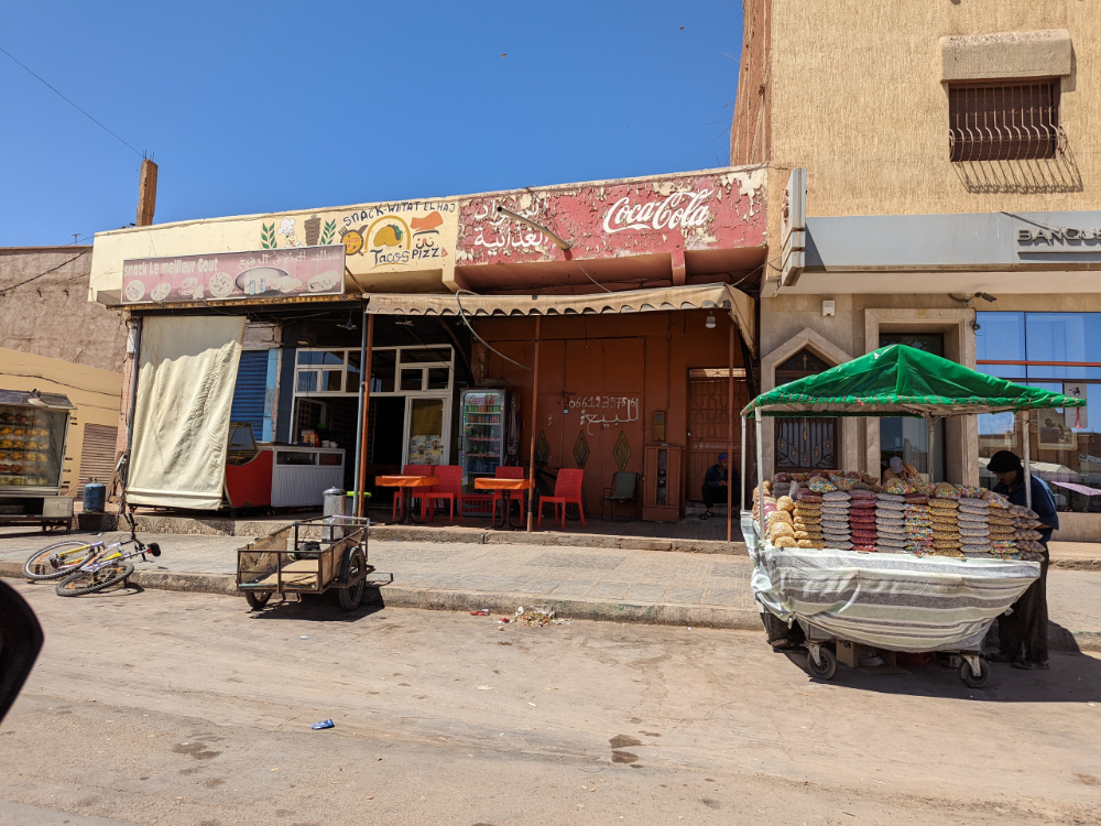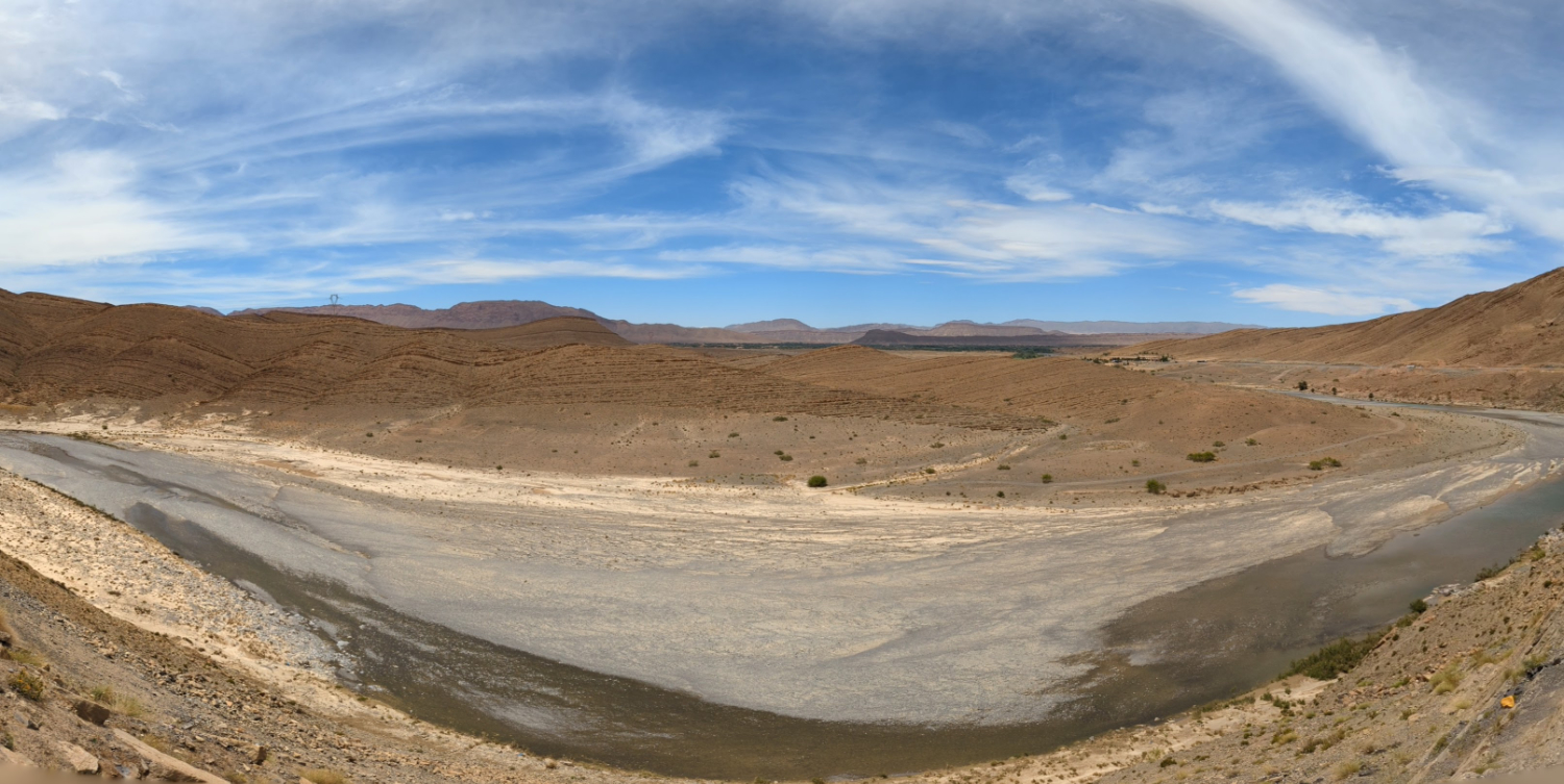 Proseguiamo poi verso Errachidia: il paesaggio cambia rapidamente e passiamo dalle praterie di alta quota tipiche dell’Alto Atlante a una zona di altopiano con Pioppi e coltivazioni per poi passare a un altro altopiano, più in basso, tipicamente predesertico dove le uniche piante sono cespugliose (Ephedra, probabilmente) o erbacee.