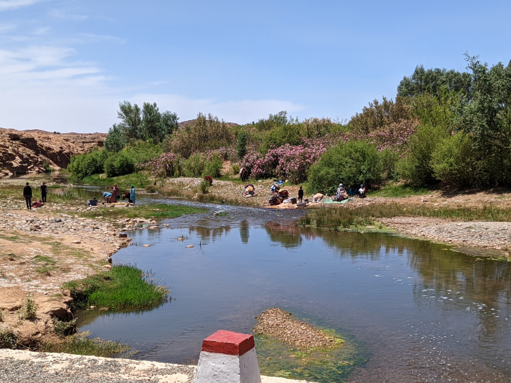 Anche in questo caso lungo la strada si vedono scorci molto interessanti, come quest'anasa nel oued dove diverse donne e bambini lavano i panni.