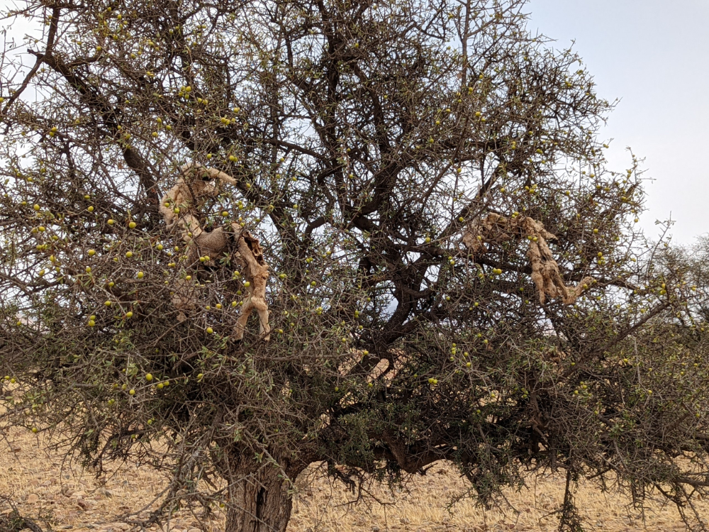 Non capisco perchè, ci sono tre pelli di pecora proprio su un'Argania.