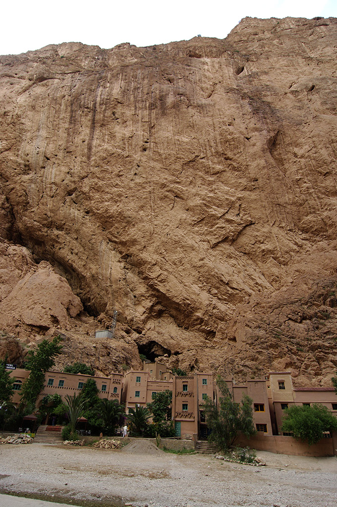 Ottavo giorno (04/06/2012)Tracciato ottavo giorno Al momento di ripartire il ragazzo con il quale ho preso il thè la sera prima mi chiede se posso dare un passaggio a suo fratello fino ad Erfoud; partiamo e arrivati a Erfoud il passeggero scende e mi invita ad andare a casa sua per pranzare con la sua famiglia; ringrazio di cuore ma proseguo in direzione di Tineghir – Gole del Toudra. Sapendo del mio itinerario il tizio che ho accompagnato mi indica un hotel proprio in fondo alle gole. Prendo la strada R702 verso ovest, poi la N10 nella stessa direzione, fermandomi un paio di volte a cercare insetti. Trovo un po’ di Meloidi e nel tardo pomeriggio arrivo alle Gole del Toudra. Tineghir Nel tratto tra la cittadina di Tineghir e le gole si vedono scorci paesaggistici molto belli e vari. Una volta arrivato alle gole, la strada ed il torrente che le scorre di fianco sono “incastonati” tra due pareti altissime di roccia; alla base di quella sull’altro lato del torrente (rispetto alla strada) vi sono due alberghi, uno dei quali è quello che mi è stato indicato. Mi registro alla reception e mi danno la camera, che ha una serratura un po’ particolare ….. un semplice chiavistello con lucchetto  ; all’interno la chiusura è allo stesso modo. Subito immagino qualche burlone che voglia fare uno scherzo: basta chiudere il chiavistello esterno (anche senza lucchetto) così chi si trova nella camera non esce più (i due chiavistelli – esterno ed interno – non sono in alcun modo collegati)  . "Serratura" esterna della camera Sistemati i bagagli scendo per il tratto di gola a scattare qualche foto e fare due passi. Rientro, doccia e cena, poi mi fermo un po’ alla reception con il netbook e mi collego alla posta elettronica e al forum, dato che hanno una zona internet wi-fi. Un’altra particolarità dell’hotel è che la corrente elettrica c’è solo dalle 19.00 alle 24.00, e qualche ora la mattina; se ho ben capito c’è un generatore che viene messo in funzione solo in certe ore della giornata. Io ero arrivato infatti verso le 18.10 e quando mi hanno portato a vedere la camera ho provato ad accendere la luce ma non funzionava, così mi hanno detto che bisognava aspettare fino alle 19.00. La sera, poi, mentre ero in camera, a mezzanotte si è staccata la corrente. ..... segue .....