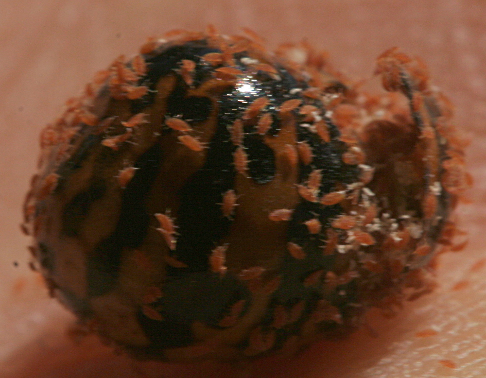 Apro con una richiesta di identificazione, che ci ha lasciati assai incuriositi: sul fusto di un arbusto, abbiamo osservato due "cosi" che a prima vista sembravano semi dalla colorazione simi-vespa. Incuriosito (e te pareva il contrario?), ne ho staccato uno e ... aperto.