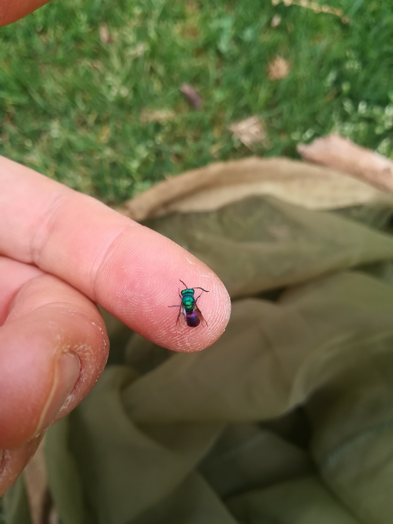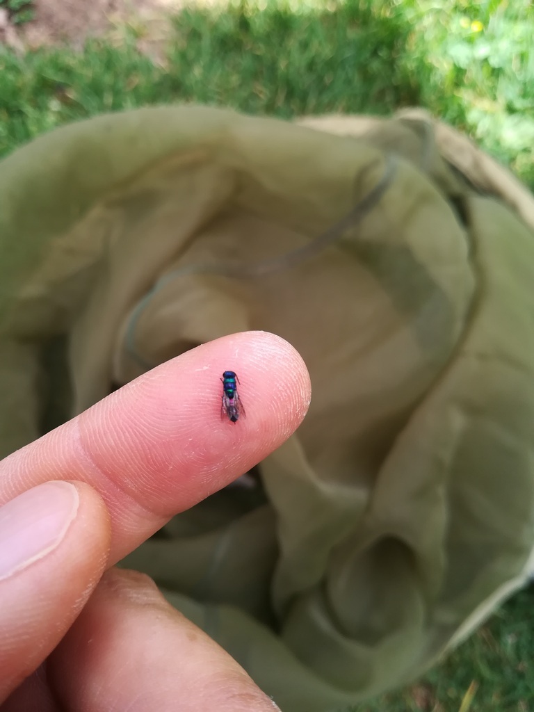 Attorno al lago ci sono alti pioppi, alcuni sani, altri sofferenti, altri morti. Questi ultimi due hanno tanti fori di uscita, sicuramente di Eurythyrea. Ci sono anche siepi di rovo fiorite dove Giulio trova alcune Cetonia funeraria e alcuni cardi con grossi megachilidi e Glaphyrus. Non possono mancare gli odonati: