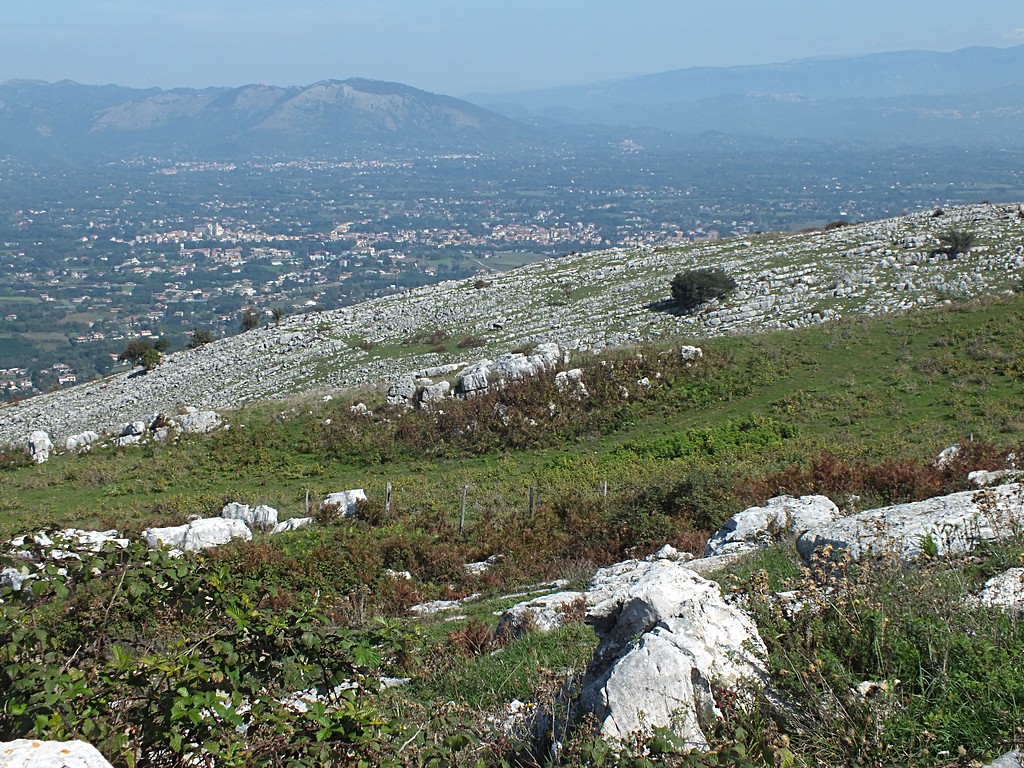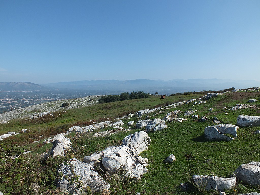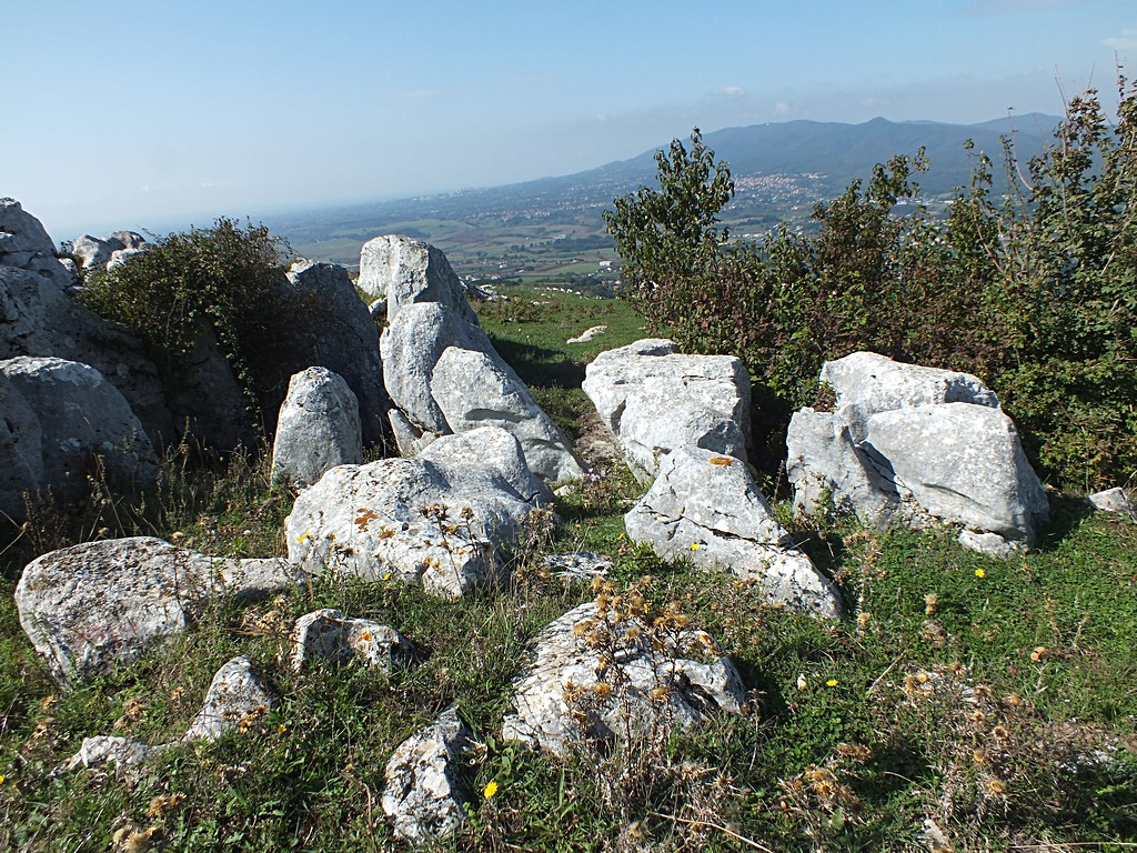Comunque, ci ho provato. Ho preso l'autostrada Roma-Napoli fino a Valmontone, poi sono salito su fino ad Artena, e oltre il paese per qualche km su una stradina di campagna. Ho lasciato la moto vicino ad un abbeveratoio tra i campi coltivati, e sono salito a piedi verso la cima della collina che ritengo possa essere Colle Tagliente. L'avvicinamento non è agevolissimo a causa delle numerose recizioni e delle siepi di rovi tra i campi, ma alla fine si raggiungono alcune zone a pascolo con rocce affioranti, che potrebbero essere adatte.