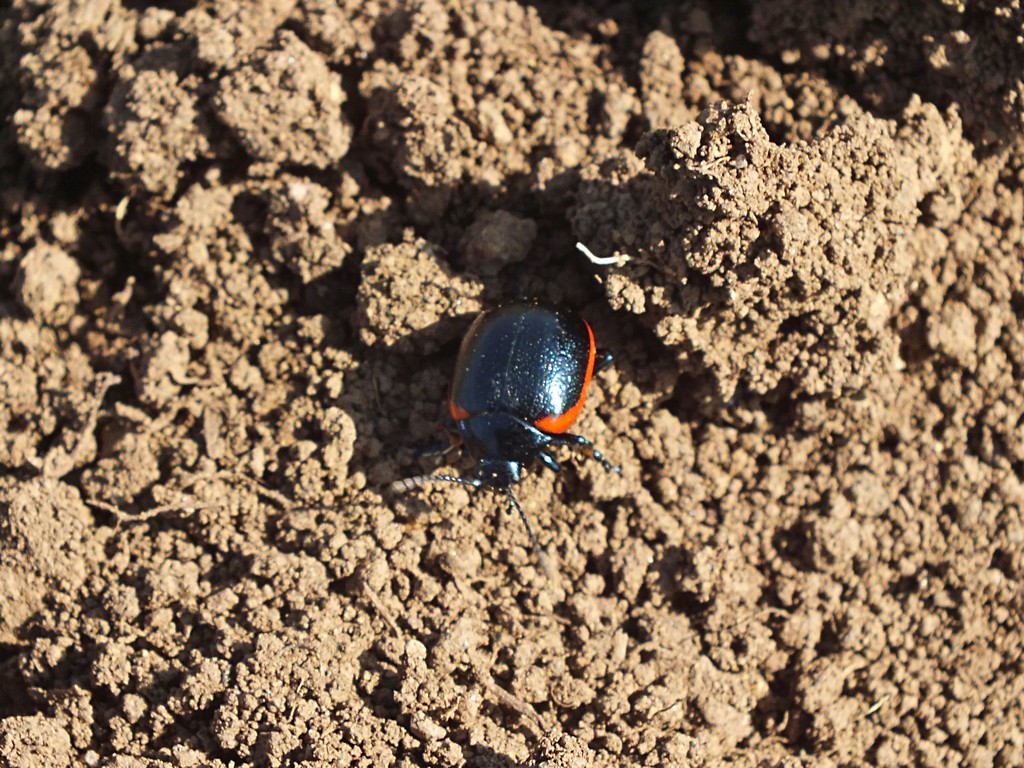 Premesso che questa è per me una rossia al 100%, ciò che mi lascia sempre qualche dubbio quando trovo queste Chrysolina tonde bordate di rosso, più che la sanguinolenta, che è mediamente più snella e punteggiata, è la bourdonnei, di cui non riesco a trovare una sola immagine, ad eccezione di quella inclusa nella descrizione (oltre a non riuscire a trovarla in natura, o forse a non riuscire a riconoscerla tra le numerose rossia).