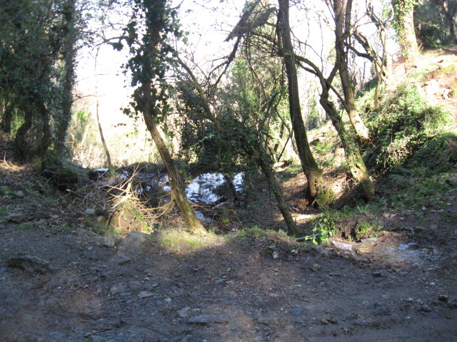 Decido di scortecciare un grosso tronco marcio di castagno (o robinia?). La vasca che vedete, oggi inutilizzata, serviva per raccogliere l' acqua da destinare ad un vivaio: qui si riproduce il rospo comune (Bufo bufo).