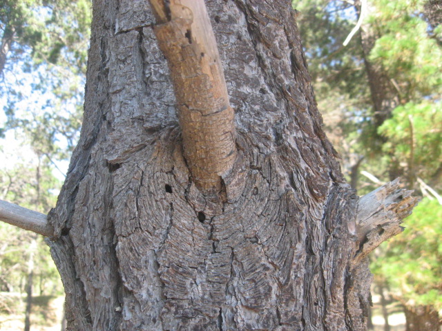 Ne approfitto intanto per fare qualche foto alla vegetazione boschiva. Essendo l' area adibita a pascolo, inutile specificare che il sottobosco è praticamente assente. Sono però abbondanti tronchi marci di pino, tuttavia quasi tutti sono ridotti ad uno spugnoso labirinto di gallerie scavate dalle termiti.