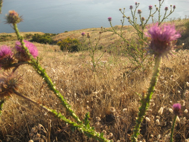 Nel pomeriggio mi sono spostato dal Piano a Punta Luccia, sul versante orientale dell' isola, un' area ampiamente riforestata con Pinus pinaster, Pinus pinea ed Eucalyptus, essenze alloctone che hanno sostituito gli antichi boschi di Quercus ilex che dovevano essere imponenti come testimoniato da ritrovamenti fossili di foglie appartenenti a questo albero. Questa quercia sopravvive ancora in vetusti esemplari isolati, in qualche stazione come Gelso e l' istmo di Vulcanello.