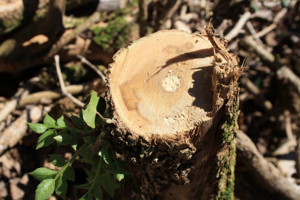 Un tronco molto interessante: se ci fate caso la parte destra della pianta è ancora vegeta, mentre quella all'estrema sinistra è secca, e si nota il segno di una galleria larvale: