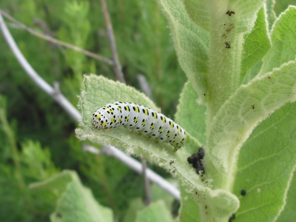 Esaminiamo un tronco arenato (salice?), nel quale troviamo una bella larvetta, forse di Lamiino, ora in allevamento da Matteo, percui asportiamo un pezzo del tronco. Continuiamo in questa area verde, trovando qualche Chlorophorus varius su piante dai fiori rosa. Su una pianta di Verbasco troviamo un bel bruco di Cucullia sp, pronto a impuparsi: ci portiamo a casa anche quello.