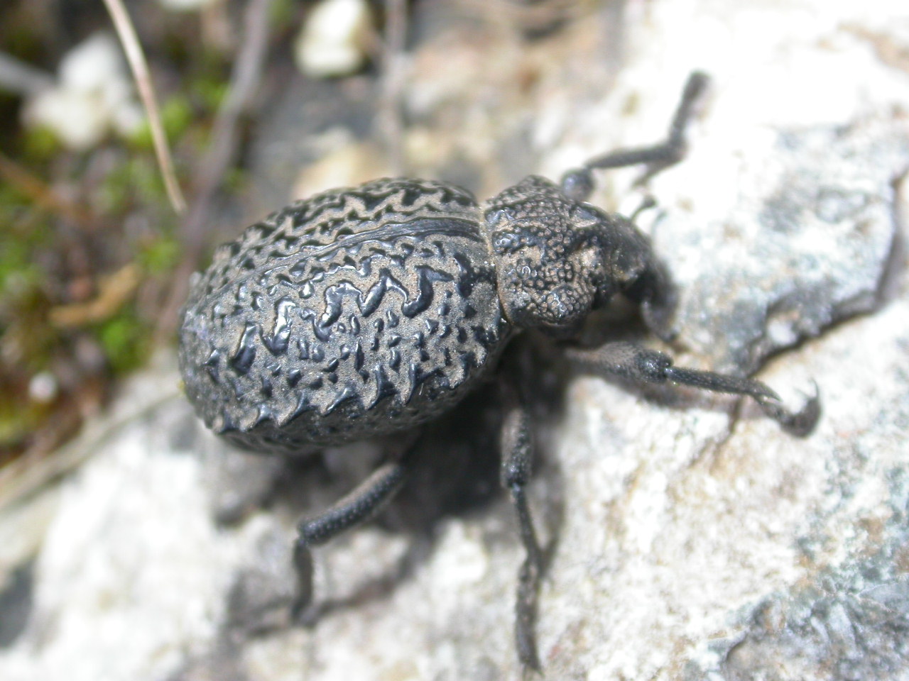 Le piante erbacee di Tavolara sono estremamente interessanti ma per questioni di tempo ho fotografato ben poco: rispettivamente Orchis brancifortii (secondo me) e Ophrys sp. (qui ci vuole Forbix….  ): Un po’ di bestiole: Brachycerus barbarus, poco comune nei punti erbosi posti più in alto e Trox cribrum, soprattutto nelle zone sgombre dalla vegetazione: Papilio hospiton: una larva di medie dimensioni su Ferula communis: Le parti morte o deperite dei ginepri e dei lentischi erano spesso attaccate da larve di xilofagi: ho così prelevato un po’ di legna: di seguito un attacco larvale su lentisco e uno su ginepro, dove è ben visibile la larva (che è stata richiusa nella galleria con nastro adesivo): Uno dei responsabili delle gallerie su lentisco ma non solo: Niphona picticornis: